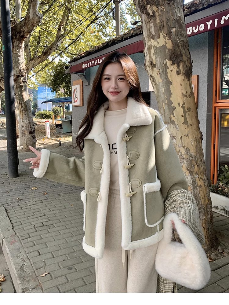 【틱톡 강추 인기 상품】스웨이드 램스울 숏코트