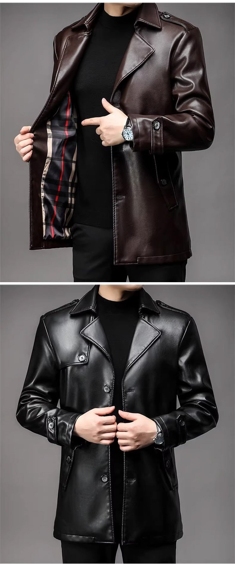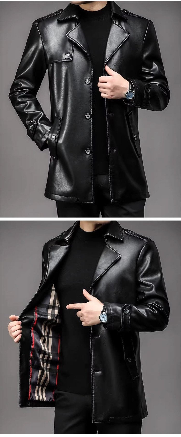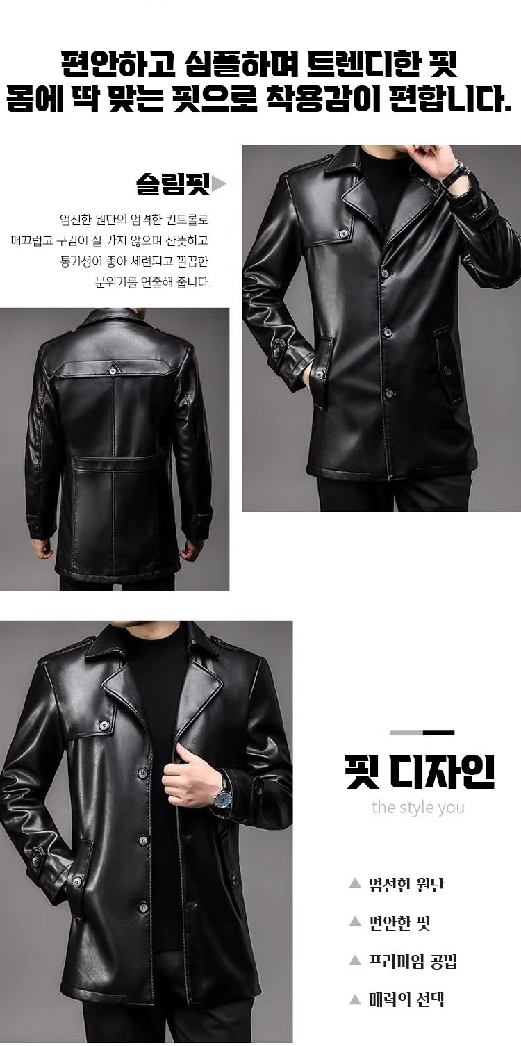 남성 미디롱 가죽 재킷