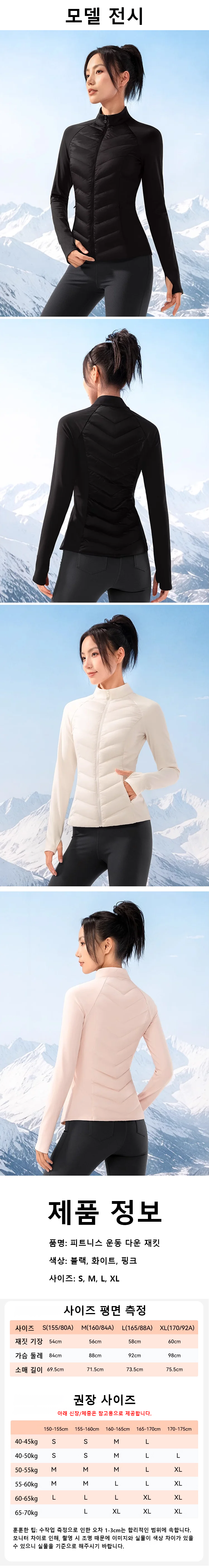 피트니스 운동 다운 재킷